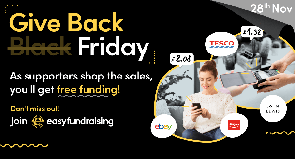 £250 each. If those connected with your organisation shop Black Friday via easyfundraising, they’ll raise an average of £7.50 at no extra cost – with just 10 supporters that’s £75 raised in a single day, turning Black Friday into GIVE BACK Friday! Make sure your organisation is registered and let your network know to join easyfundraising before