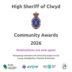 Cymunedol a Gwirfoddol Conwy (CCGC) ar volunteering@cvsc.org.uk